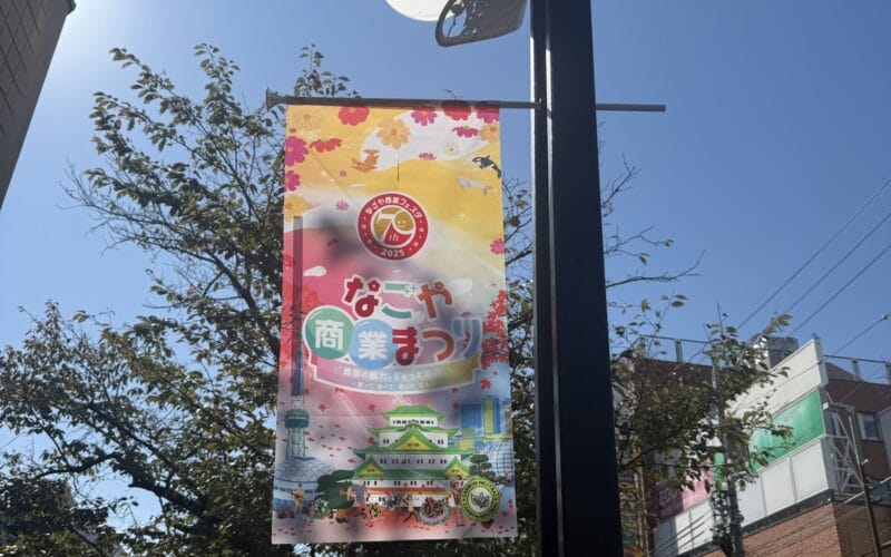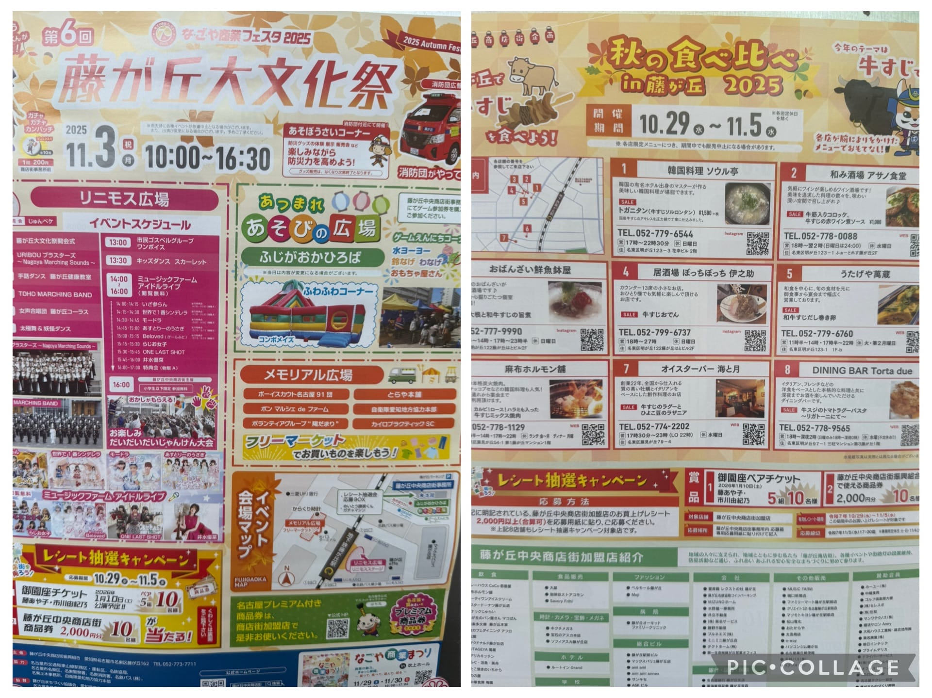 昨年に引き続き、11月3日(文化の日・祝日)に「藤が丘大文化祭」が開催されます。ちょうど「なごや商業フェスタ」と期間が被っていて、商店街ののぼりが「なごや商業まつり」になっていました。